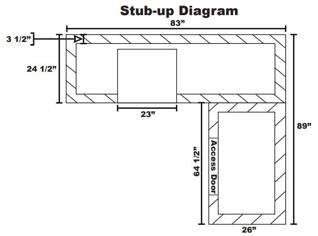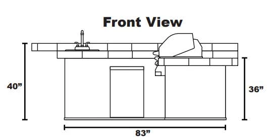 - Dimensions: Grill Side- 105 1/2″W x 36″H x 36 3/4″D | Fridge Side- 96 3/4″W x 40″H x 36 3/4″D