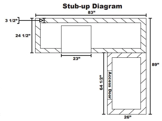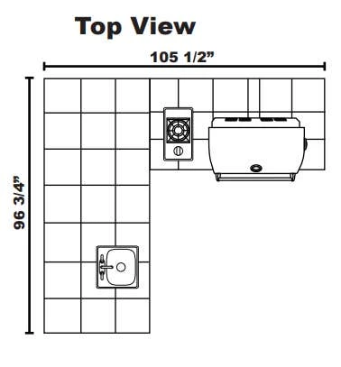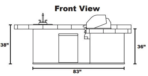 - Dimensions: Grill Side- 105 1/2″W x 36″H x 36 3/4″D | Fridge Side- 96 3/4″W x 38″H x 36 3/4″D