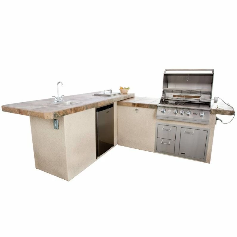 The Lion Commercial Q is one of the larger islands out there with plenty of room for prepping, cooking, and entertaining. You don’t need to be using this island to run an outdoor restaurant but you probably could. An optional sink, ice chest, standard refrigerator, and grill make this a complete outdoor kitchen.
