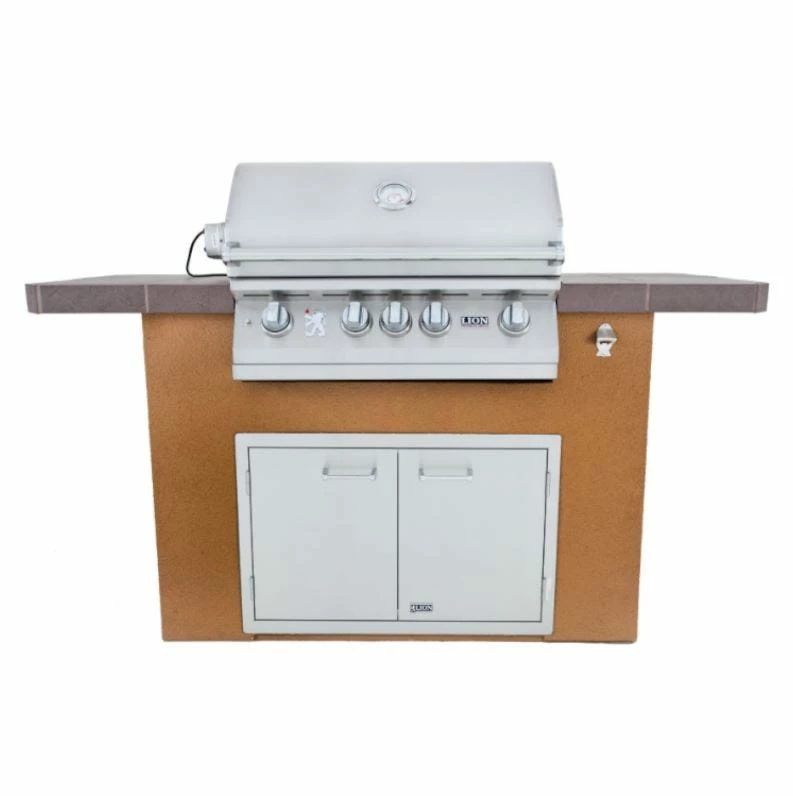 Lion Premium Grills is an industry leader in the outdoor kitchen industry. Manufacturing BBQ islands, BBQ Grills, BBQ Island Accessories, And Freestanding Grill Accessories . When you build your products out of only the best materials you can back those products with some of the industry’s best warranties. Their 304 stainless steel grill bodies, 304 stainless steel rod cooking grids, and 304 cast stainless steel burners all have a lifetime warranty. Lion also offers outdoor necessities like a refrigerator, beverage center, side burners, access doors, storage drawers, and more. Currently, each and every Lion comes standard with Lion’s Gourmet Cooking Package which includes: a griddle that replaces a standard cooking grid, a grill head cover, the rotisserie burner, rotisserie with motor, a smoker box, and a cooking grid lifter that is also a bottle opener. Add these features with Lion’s standard of quality and you get the recipe for the best value in the grill business.