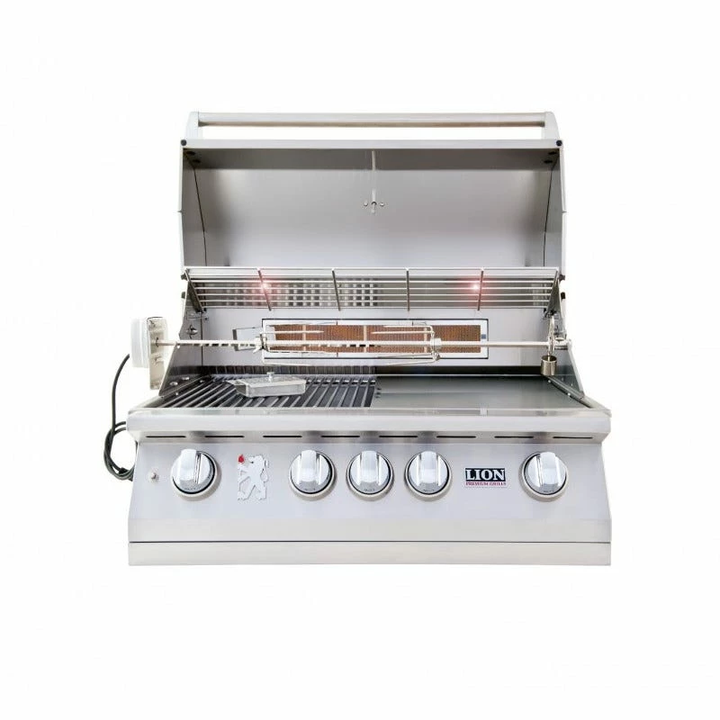 Lion Premium Grills is an industry leader in the outdoor kitchen industry. Manufacturing BBQ islands, BBQ Grills, BBQ Island Accessories, And Freestanding Grill Accessories . When you build your products out of only the best materials you can back those products with some of the industry’s best warranties. Their 304 stainless steel grill bodies, 304 stainless steel rod cooking grids, and 304 cast stainless steel burners all have a lifetime warranty. Lion also offers outdoor necessities like a refrigerator, beverage center, side burners, access doors, storage drawers, and more. Currently, each and every Lion comes standard with Lion’s Gourmet Cooking Package which includes: a griddle that replaces a standard cooking grid, a grill head cover, the rotisserie burner, rotisserie with motor, a smoker box, and a cooking grid lifter that is also a bottle opener. Add these features with Lion’s standard of quality and you get the recipe for the best value in the grill business.