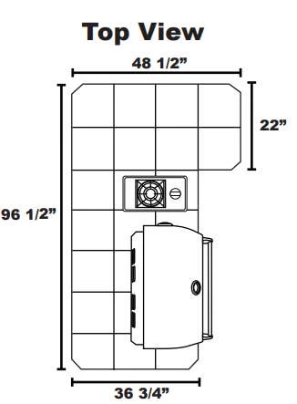 - Dimensions: 96 1/2″W x 38″H (Counter Top) x 36 3/4″-48 1/2″D (Overhang)