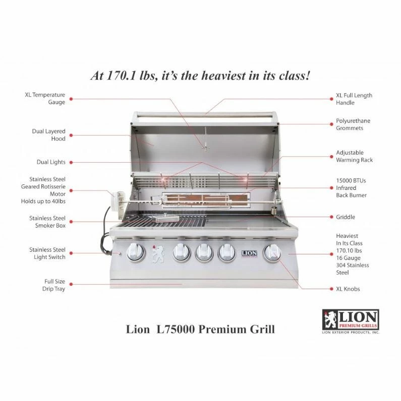 Lion Premium Grills is an industry leader in the outdoor kitchen industry. Manufacturing BBQ islands, BBQ Grills, BBQ Island Accessories, And Freestanding Grill Accessories . When you build your products out of only the best materials you can back those products with some of the industry’s best warranties. Their 304 stainless steel grill bodies, 304 stainless steel rod cooking grids, and 304 cast stainless steel burners all have a lifetime warranty. Lion also offers outdoor necessities like a refrigerator, beverage center, side burners, access doors, storage drawers, and more. Currently, each and every Lion comes standard with Lion’s Gourmet Cooking Package which includes: a griddle that replaces a standard cooking grid, a grill head cover, the rotisserie burner, rotisserie with motor, a smoker box, and a cooking grid lifter that is also a bottle opener. Add these features with Lion’s standard of quality and you get the recipe for the best value in the grill business.
