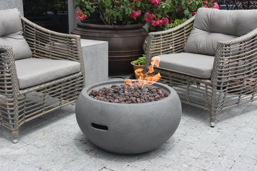 The Modeno Newbridge Propane Fire Bowl, designed in a circular fashion, serves as a captivating centerpiece for your patio, deck, or well-ventilated space, leaving a memorable impact on your guests. Its appeal arises from both its charming natural appearance and its efficient GFRC cast finish, providing enduring warmth. The top-notch concrete finish is low-maintenance, and it includes an all-weather cover for added protection.