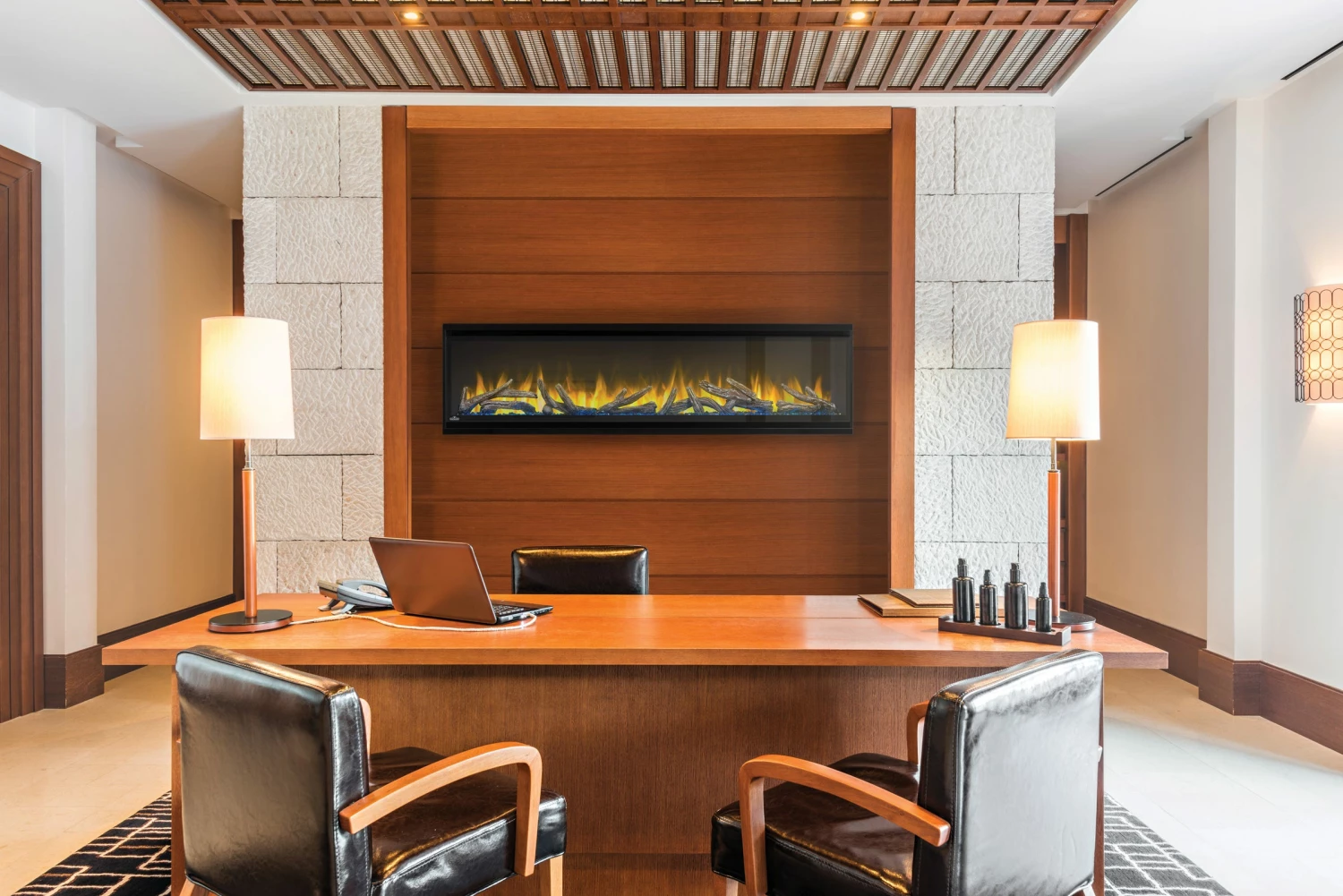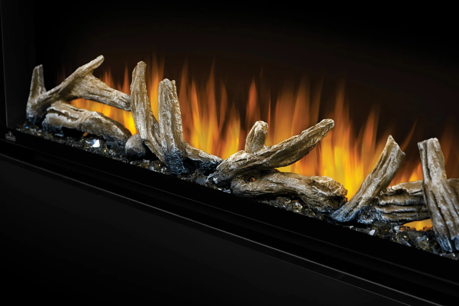 See the fireplace, not the frame with Napoleonรขยยs Alluravision Series linear electric fireplaces. They stand out from the rest with their nearly frameless viewing area which highlights the unique flame colors. Set the mood with yellow, orange, blue and multicolor flames with the push of a button. Easy to use, these electric fireplaces are plug and play – just hang on the wall and plug them in. The Alluravision Series can also be hardwired to 120 v (slim) or 240 v (deep models). Three sizes, 42, 50, and 60-inch, come standard with a crystal media ember bed and remote control. The NIGHT LIGHT and glass media with driftwood make beautiful additions to the deep model. Napoleonรขยยs Alluravision Series linear electric fireplaces are about adding the fireplace, and not the frame to your favorite room.