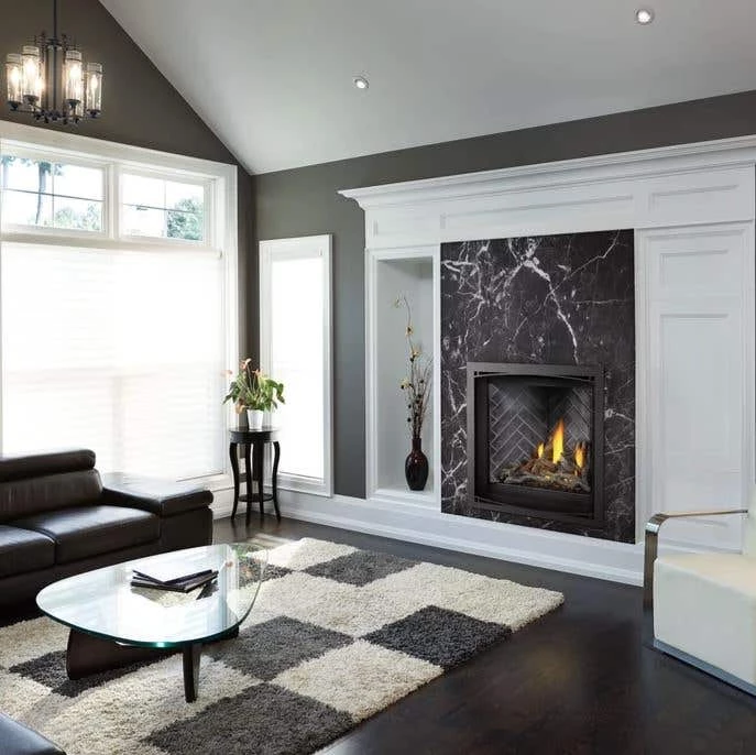 Gas direct vent fireplaces are popular fireplaces that burn efficiently enough to be a heat source but not too efficient to where the fire lacks realism. They can be vented both vertically or horizontally. Their fireboxes exhausts the inner vent pipe while drawing outside air for combustion through the outer pipe.