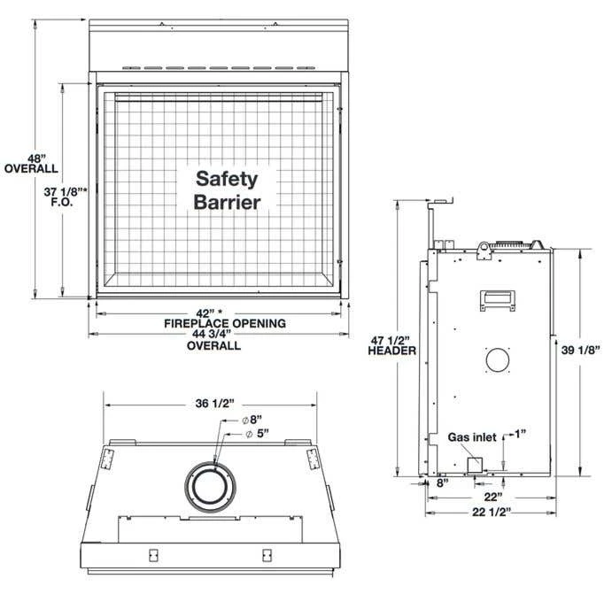 - Venting Size/Type: 5″ x 8″ DuraVent