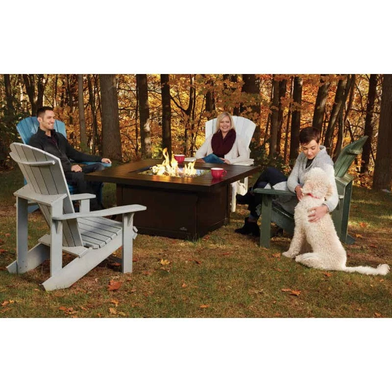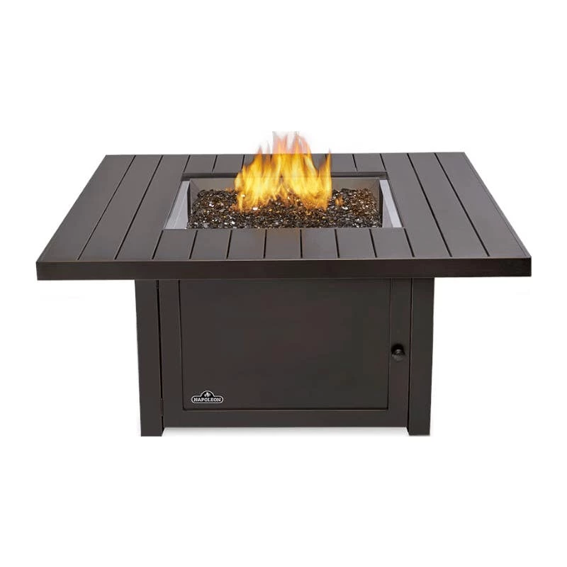 The perfect outdoor living space has a comfortable place to relax, a place to set your drinks and gather around, a place that is the focal point. Napoleon’s St. Tropez Square Patioflame® Table is the perfect addition to your outdoor living space. It features a classic, linear design that will match any outdoor decor. The rustic bronze finish gives an antique style, while the linear gas burner adds a modern flair with a ribbon of flame. A stylish glass ember bed reflects the light of the flames warming you and providing a cozy atmosphere. The St. Tropez Square Patioflame® Table puts out 60,000 BTU’s of heat providing beautiful dancing flames, and light for your outdoor space. The table itself hides the propane tank behind an easy to access door.