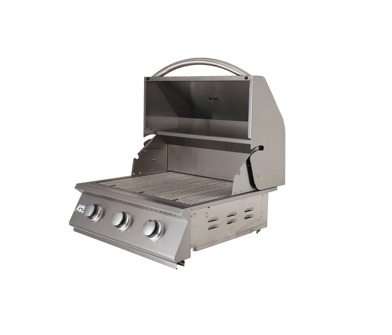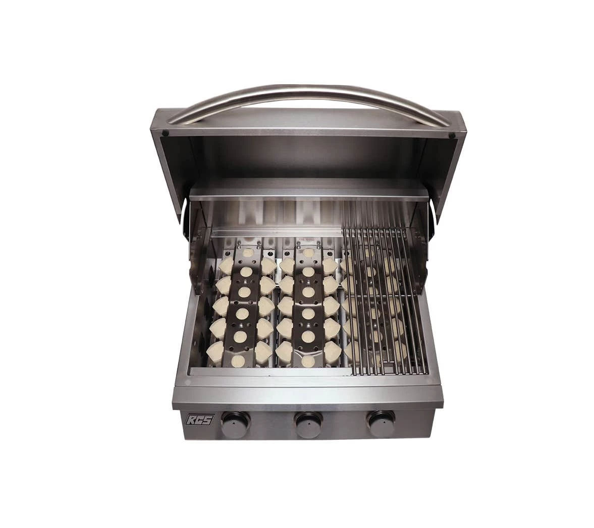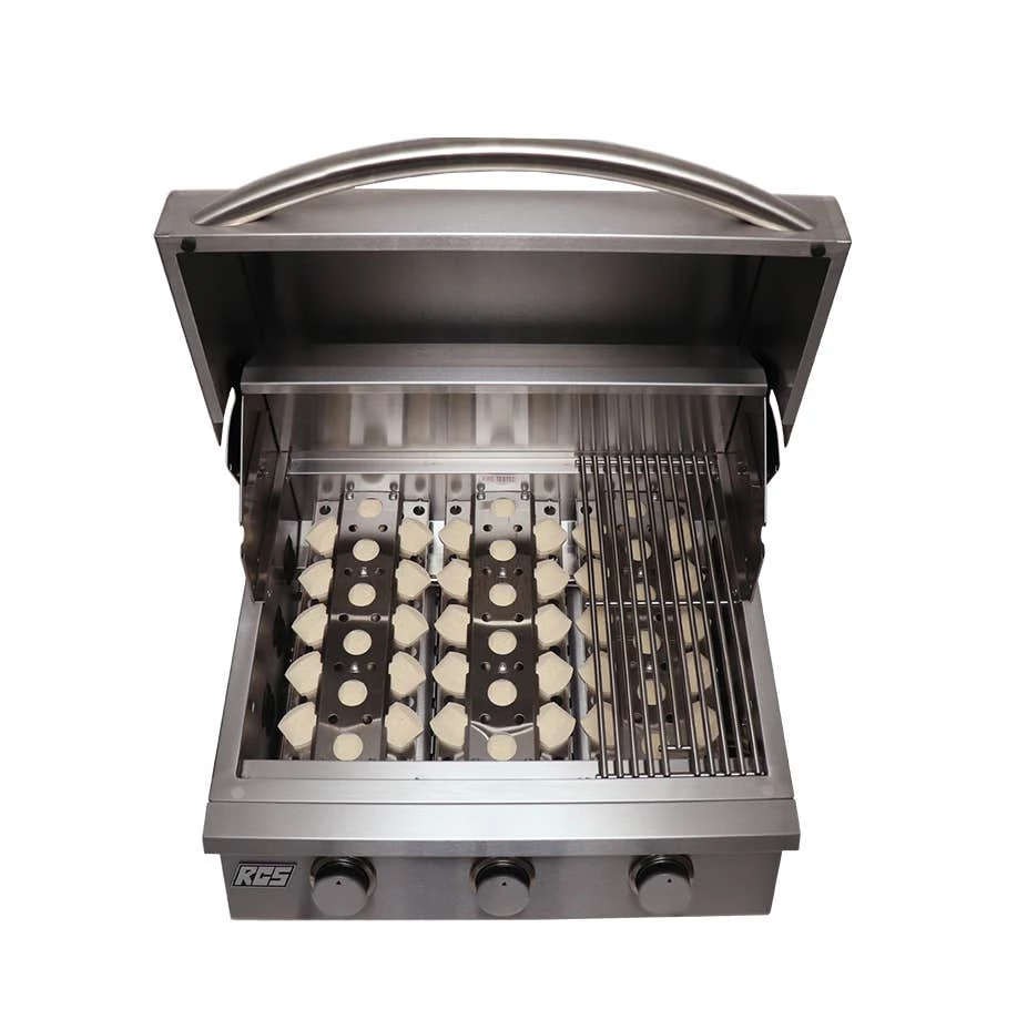 The RCS Premier Series 26 inch natural gas BBQ grill features three (3) stainless steel burners, for 36,000 BTUs of total cooking power. Enjoy a reliable startup every time, with the Sure-Strike ignition system. Backup flash tubes, with cross over tubes between burners, allow for one burner to easily light off the other. Large, easy to turn control knobs make operation simple. A stainless steel warming tray keeps freshly grilled meals ready for eating, and the full drip tray makes cleanup effortless. With 414 square inches of primary and 132 square inches of secondary, this totals a large 546 square inches of total cooking space! This RCS RJC32a grill is the ideal solution to all of your backyard grilling needs.