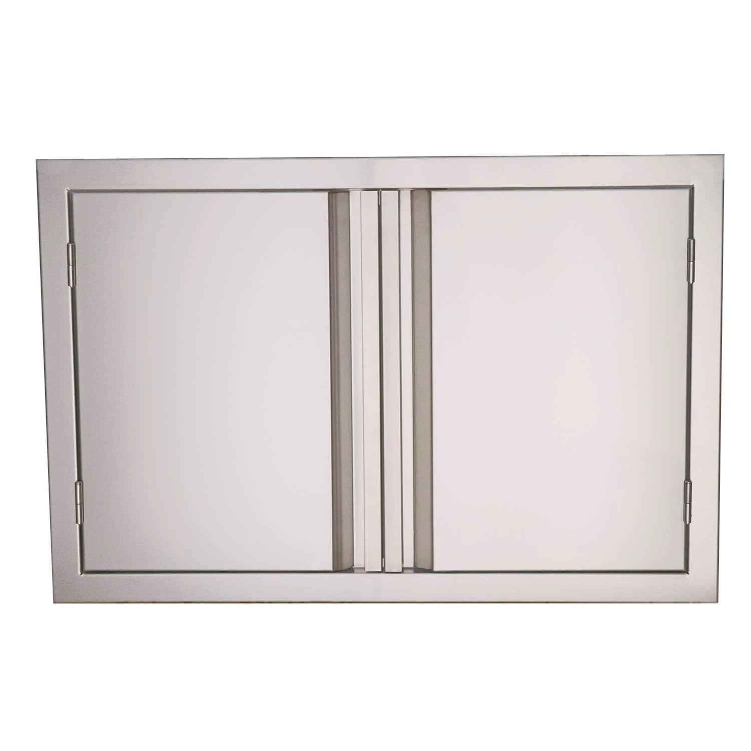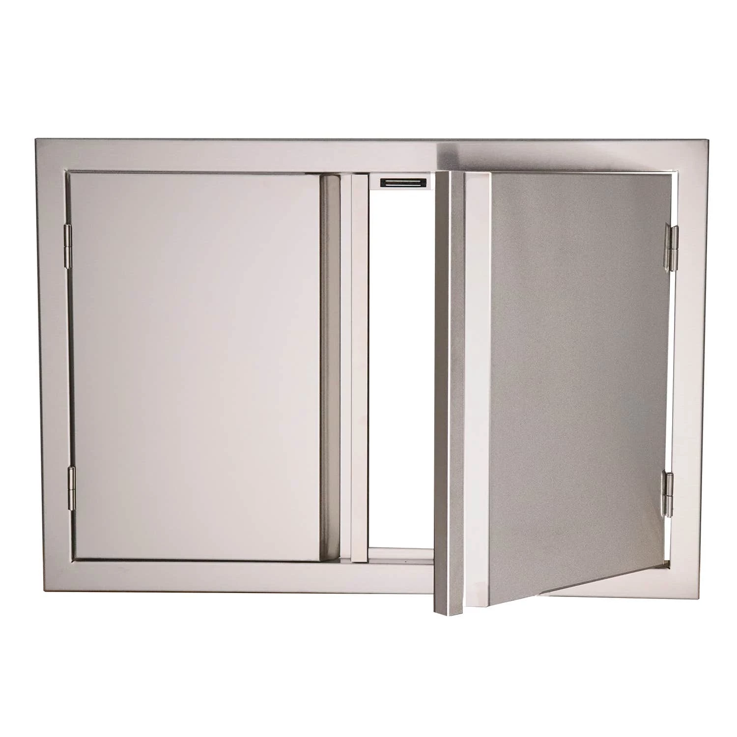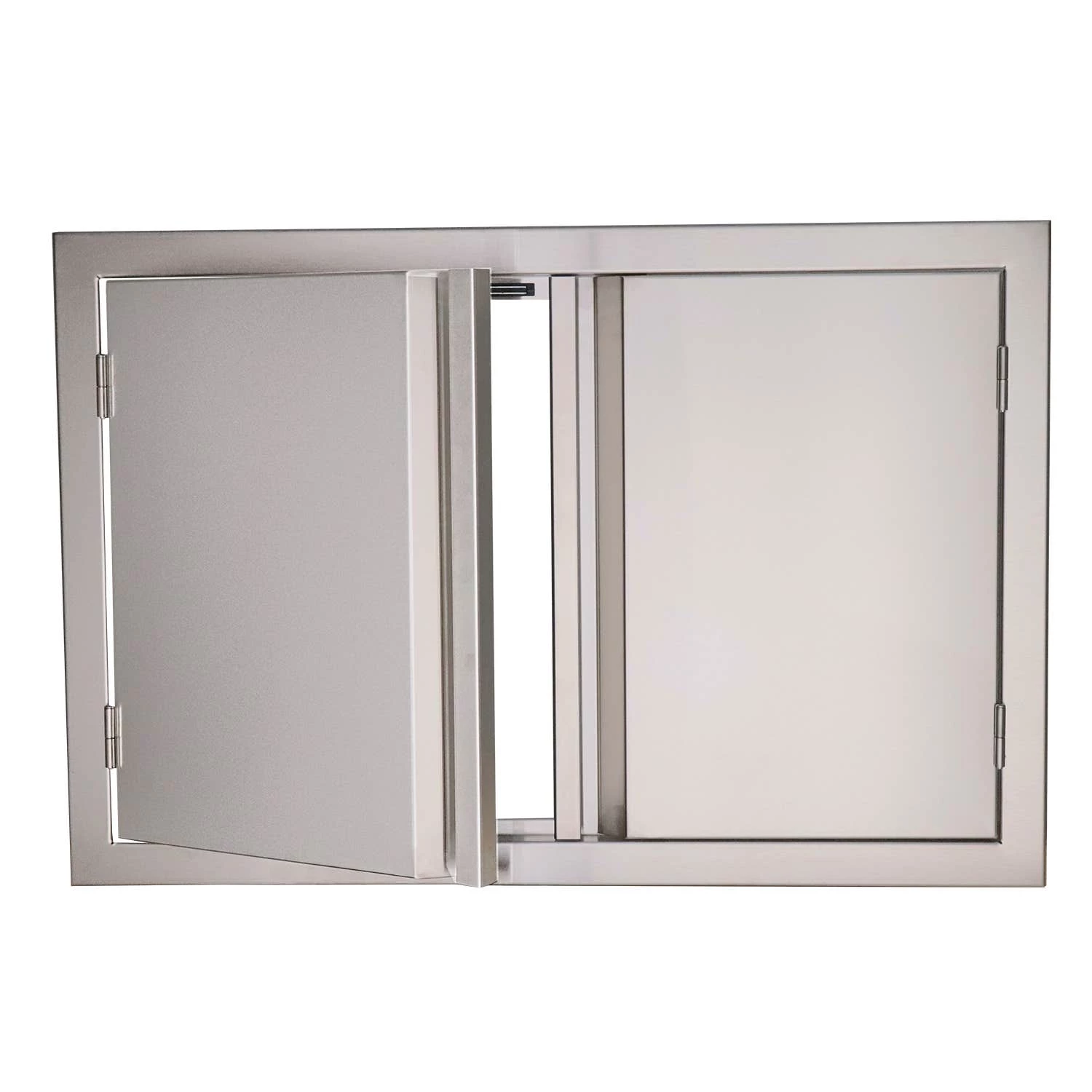 The RCS Valiant Series 33-Inch Double Access Door features 304 stainless steel construction for durability against the outdoor elements. These doors are double-lined for sturdiness and feature recessed handles, which gives them a sleek look to complement any outdoor kitchen. They can also open a full 180 degrees, so you get unobstructed access to the inside of your outdoor kitchen or BBQ island.