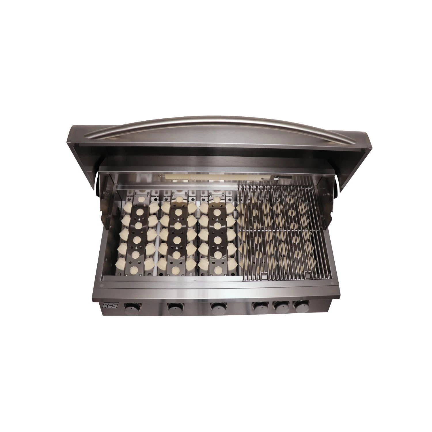 Enjoy premium quality at an economical price with the RCS Premier Series 40-inch natural gas built-in BBQ grill. Under the hood, five stainless steel burners provide ample cooking power rated for 60,000 BTUs of combined output, plus a 12,000 BTU rated rear infrared rotisserie burner. Grill up BBQ feasts for family and friends with 694 square-inches of primary cooking area and 212 square-inches of warming rack space for a total of 906 square-inches! Briquette flavor grids ensure evenly cooked foods and a full-width slide-out drip tray makes cleanup easier. Large, easy to turn control knobs make operation simple and feature RCS Sure-Strike ignition for reliable lighting every time. Backup flash tubes with cross-overs between burners allow you to light multiple burners using a single igniter. A stainless steel warming tray keeps freshly grilled foods hot and ready to serve. The RCS RJC40A is a quality solution to all of your backyard grilling needs, without the high-end price. This natural gas grill is field-convertible for use with propane gas (propane gas regulator and hose not included).