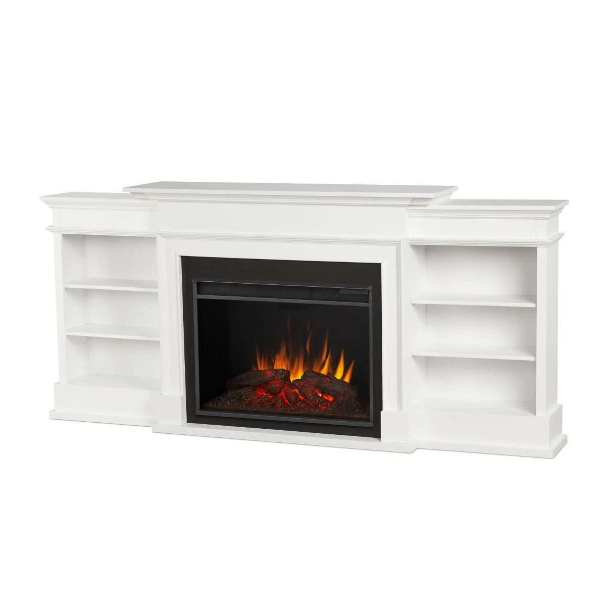 The Ashton Media Console, one of our largest fireplaces, has a clean, traditional design that will enhance the comfort of any room. Exclusively designed, the VividFlame Grand Electric Firebox is 30% larger than our standard firebox and mimics the look of a real fire, but does not require a chimney or vents. Features include infrared LED technology and six thermostat settings. Available in a white finish.