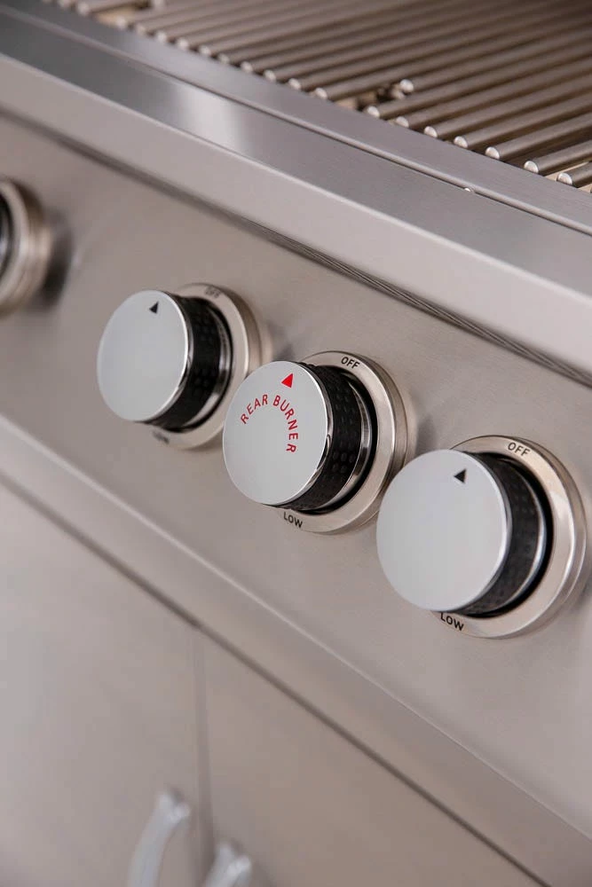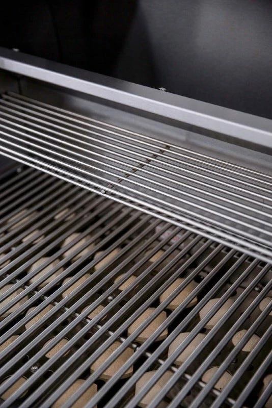 The Summerset Sizzler Series is Summerset’s entry level with regards to price however it is not an entry level grill line. The body of each grill is constructed of 443 grade stainless steel. It is a little cheaper to manufacturer but is backed by the same lifetime warranty as the higher grades of stainless. The Sizzler series uses stainless tube burners at 12,000 BTUs each below briquettes that are tucked evenly and securly into stainless steel briquette racks. This cooking system provides even cooking heat while adding smokey flavor to your food and minimizing flare ups. No frills like interior lights, LED control knobs, rotisseries, standard with this line.