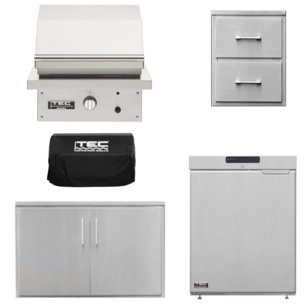 - Included Items: TEC Grills Patio 26″ FR Built-In Grill, Double Doors, Double Drawers, Refrigerator, Protective Grill Cover