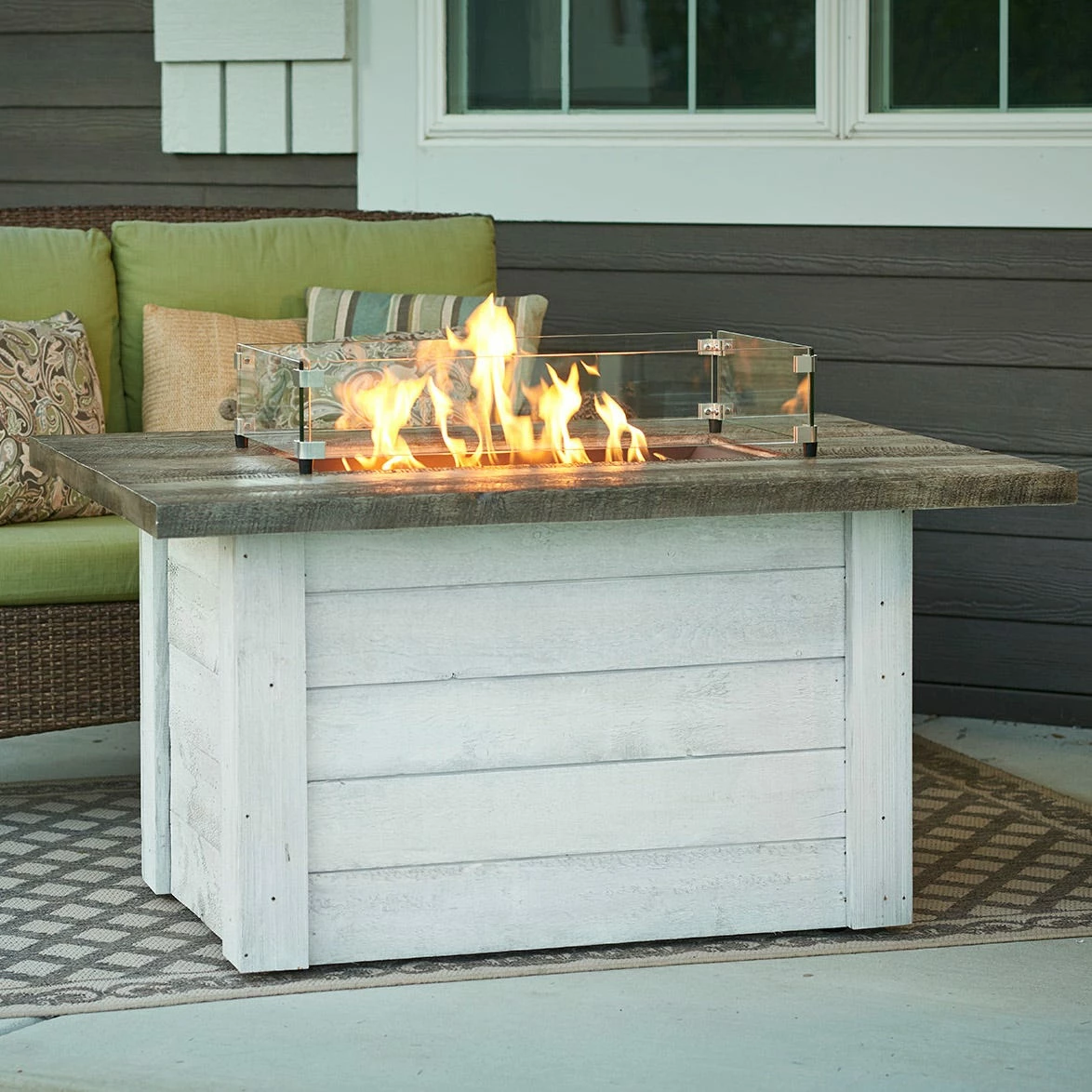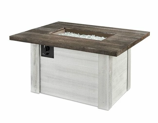 The Alcott Gas Fire Pit Table has a modern farmhouse aesthetic that features an Antique Timber Supercast and a White Washed shiplap base. With a 12×24″ Honey Glow Brown burner, the Alcott delivers a warm glow that is relaxing and enjoyable. This gas fire table brings together a rustic and contemporary look that will have you in love with your outdoor space for years to come. Stainless Steel Crystal Fire Burners are made from high quality Stainless Steel (commercial grade #304) and include tempered fire glass gems and ignition controls. Each burner is UL listed for safety and quality. They work with Outdoor Great Room’s line of fire pit tables or can be purchased separately for custom-built fire pits and projects. Crystal Fire Burners can run for 8-16 hours using a 20 lb. propane tank or can be hooked up to a natural gas line. Adjust the flame height to your desired setting and enjoy. With just the push of a button, a beautiful clean-burning fire appears atop a bed of tempered fire glass gems. Optional Electronic Ignition Systems allow for use with wall switches or remote controls. The electronic ignitions have the necessary certifications for commercial applications.