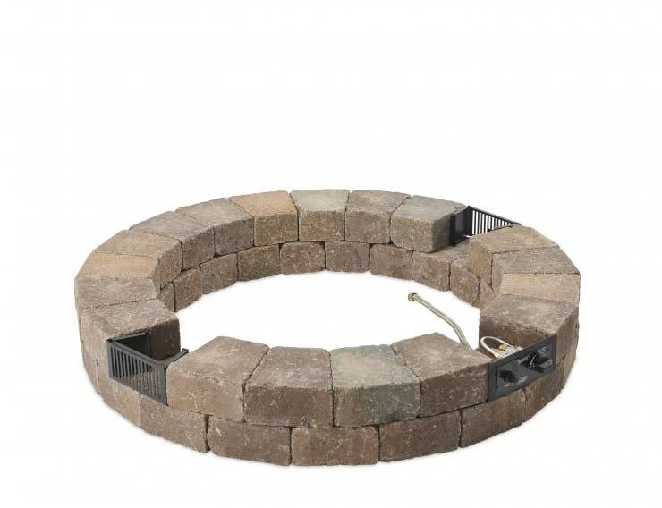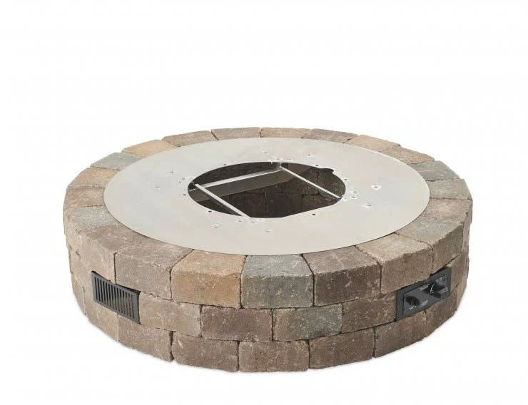 The Outdoor GreatRoom Company BRON52-K Bronson Round Gas Fire Pit is a premium DIY fire pit kit you can put together yourself for your outdoor space. Everything needed to put together your own fire pit is included in this kit. The Outdoor GreatRoom’s Crystal Fire Plus burner and burner plate insert, included in this kit, features premium 304 grade stainless steel construction and boasts a BTU output of 105,000 (LP) or 106,000 (NG). Also included in this kit are 84 paver blocks, 2 ventilation blocks, a control panel, and 54 lbs of tumbled lava rock to fill out the burner pan. A fully built round Bronson fire pit measures 16″ high and 52″ across, with a diameter of 36″ for the burner pan. Additional options are available to add onto this fire pit. Please note that there is no propane tank storage built into this pit.