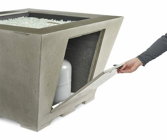 The Cove Collection is the perfect addition to any contemporary outdoor space. The Natural Grey Supercast™ concrete lets the focus be on the stunning 24×24″ Black color coated Crystal Fire® Burner. The organic, natural appearance of the concrete is unique to each unit and color variations, pitting, and wear are common attributes to the beauty of the fire bowl. Stainless Steel Crystal Fire Burners are made from high quality Stainless Steel (commercial grade #304) and include tempered fire glass gems and ignition controls. Each burner is UL listed for safety and quality. They work with Outdoor Great Room’s line of fire pit tables or can be purchased separately for custom-built fire pits and projects. Crystal Fire Burners can run for 8-16 hours using a 20 lb. propane tank or can be hooked up to a natural gas line. Adjust the flame height to your desired setting and enjoy. With just the push of a button, a beautiful clean-burning fire appears atop a bed of tempered fire glass gems. Optional Electronic Ignition Systems allow for use with wall switches or remote controls. The electronic ignitions have the necessary certifications for commercial applications.