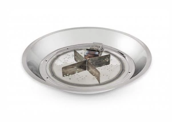 Round Stainless Steel Crystal Fire® Plus Burner can be used for custom-built fire pits or your own outdoor fire feature to complement your landscaping project. All burners have a higher BTU capacity and upgraded burner construction for a brighter, taller, fuller, more yellow flame. Adjust the flame height to your desired setting and enjoy. With just the push of a button, a beautiful clean-burning fire appears atop a bed of tempered fire glass gems.