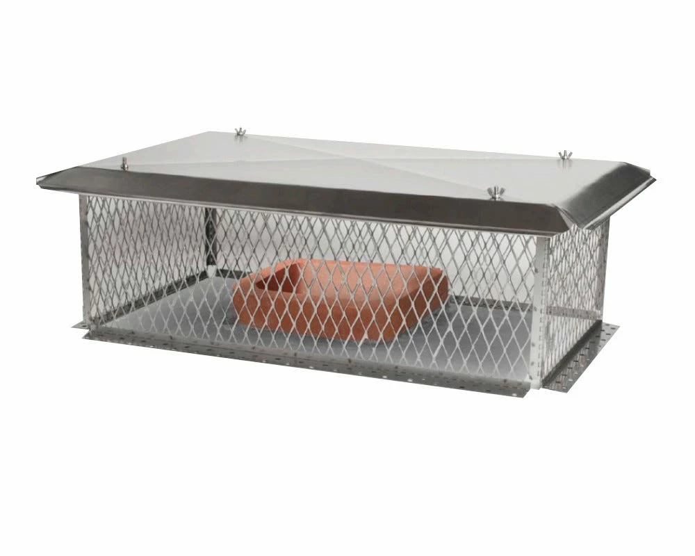 Protect the top of your chimney with a multi-flue chimney cap. All Ventis Chimney Caps are proudly made in the USA. All top mount caps are available in stainless steel or copper. Both stainless steel and copper caps have a limited lifetime warranty. Ventis Chimney Caps are easy to assemble with a wing nut attaching the lid to the mesh walls. The base is a 1 1/2″ wide with pre-drilled holes to for drilling and attaching with tap-con screws.The mesh is 10″ tall. The lid (mesh wall) must be 5″ taller than any flue it covers.