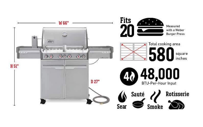 WeberGrills were born to Barbecue and that’s exactly what was in mind when creating the Summit S-470 Gas Grill (Natural Gas). Family meal time take on a new meaning when you step outside to your fully stock and equipped backyard kitchen. A grill that can add a touch of smoked flavor to any dish with the build in smoke box, or rotate an entire chicken on the built in rotisserie. Whatever your grilling needs are, The Weber Summit S-470 Gas Grill has you covered.